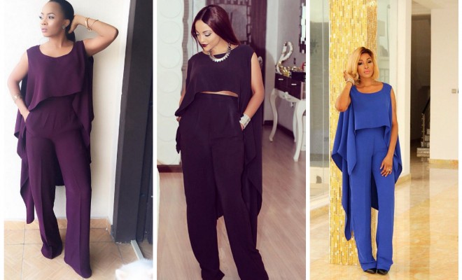 Toke Makinwa, Freda Francis and Dabota Lawson all rocked this cape style Beryl blouse and wide leg trousers by Wannifuga designs.
