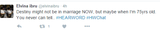 The Classic FM OAP was part of a Twitter Interview earlier today, where she spoke on marriage and relationship. According to Elvina, ‘I have never had a desire to get married, so I am in a very happy place. However, never say never because ultimately my destiny might not be in marriage NOW, but maybe when I’m 75yrs old. You never can tell’.