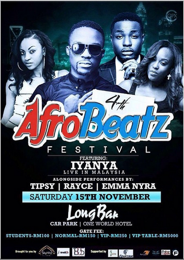 Come Saturday, November 15, 2014, MMMG leading act, Iyanya will lead other Nigerian pop stars billed to perform at the 4th edition of the Afro Beat Festival in Malaysia.
