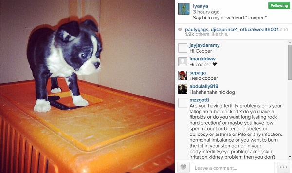 Pop singer, Iyanya has become a new pet breeder as he introduces his new pal to the world, which he calls ‘Cooper.’