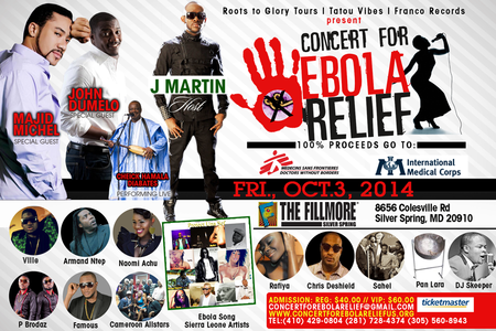 With Nigeria’s Afro pop singer, J Martins leading the pack as the host of the event, the Concert For Ebola Relief is scheduled to hold on October 3, 2014 at the Fillmore Silver Spring, Cameroon.