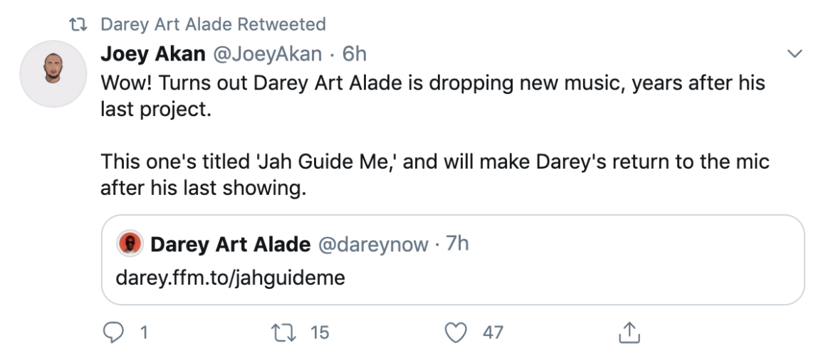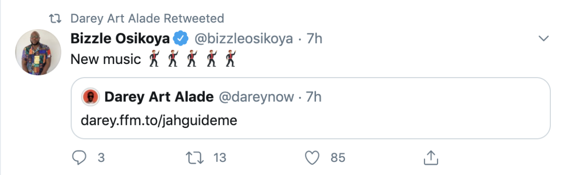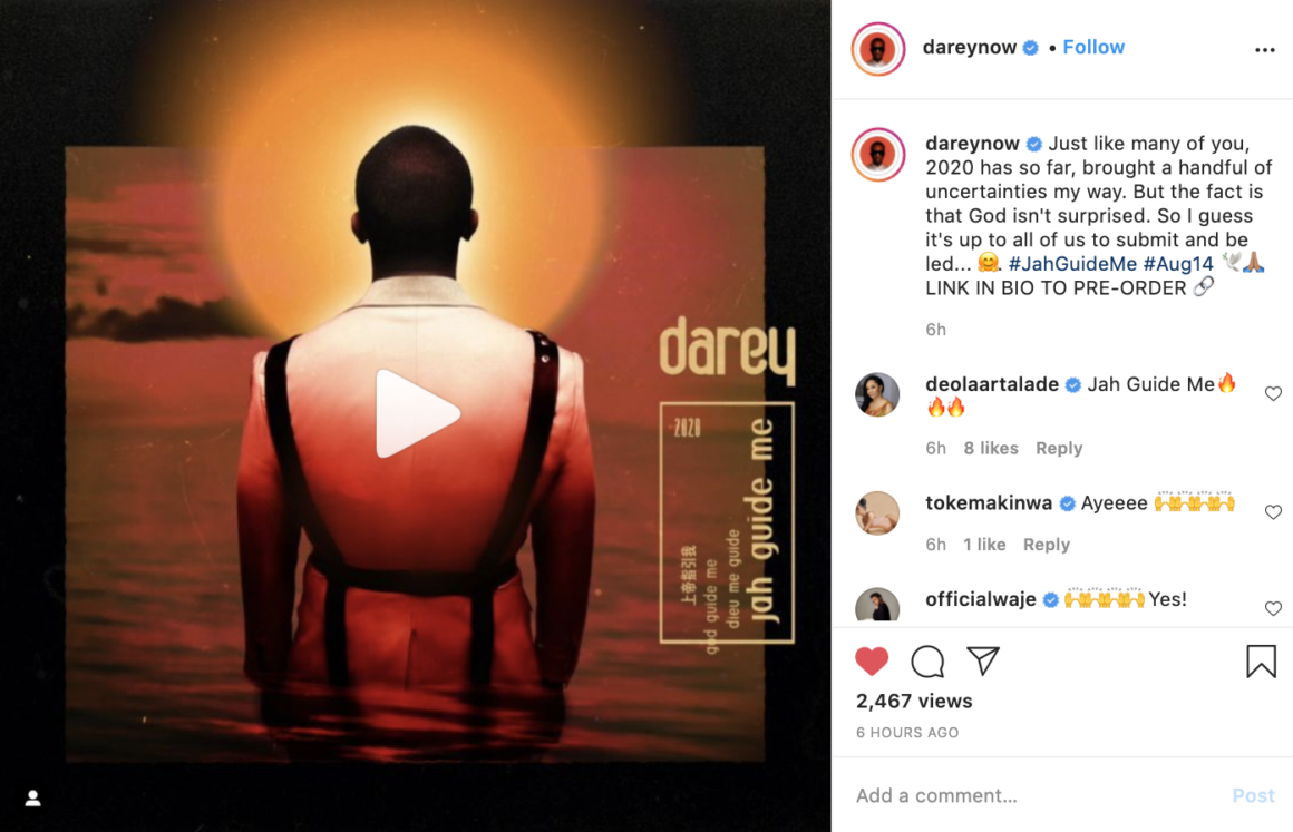 Music heads like Joey Akan and Bizzle are already psyched at the announcement and the whole of twitter was waxing lyrical about the potential of a 2020 album from Darey. Particularly, after he teased some new music when he graced the stage with Teni during the BAFEST concert in Lagos, late last year.