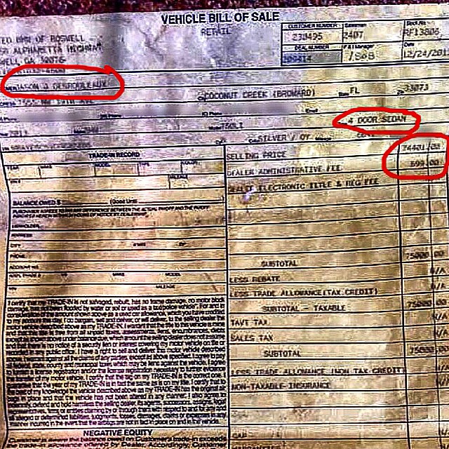 The receipt appears to show the singer purchased a four-door sedan for $74,431.22, as well as the Dealer Administrative Fee of $599.00, on December 24, but some of his followers have suggested the bill is for a different vehicle.