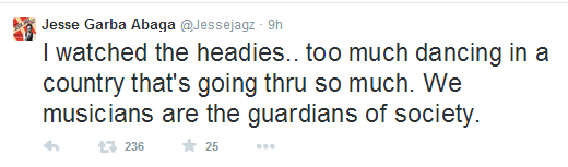 Jesse wrote: ‘I watched the Headies, too much dancing in a country that’s going through so much. We musicians are the guardians of society’.