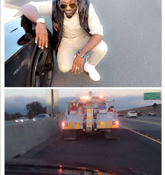 The Last Flight to Abuja actor was recently in Las Vegas before making his way to Los Angeles where he was involved in an incident that saw his tyre actually ripped off its rim.