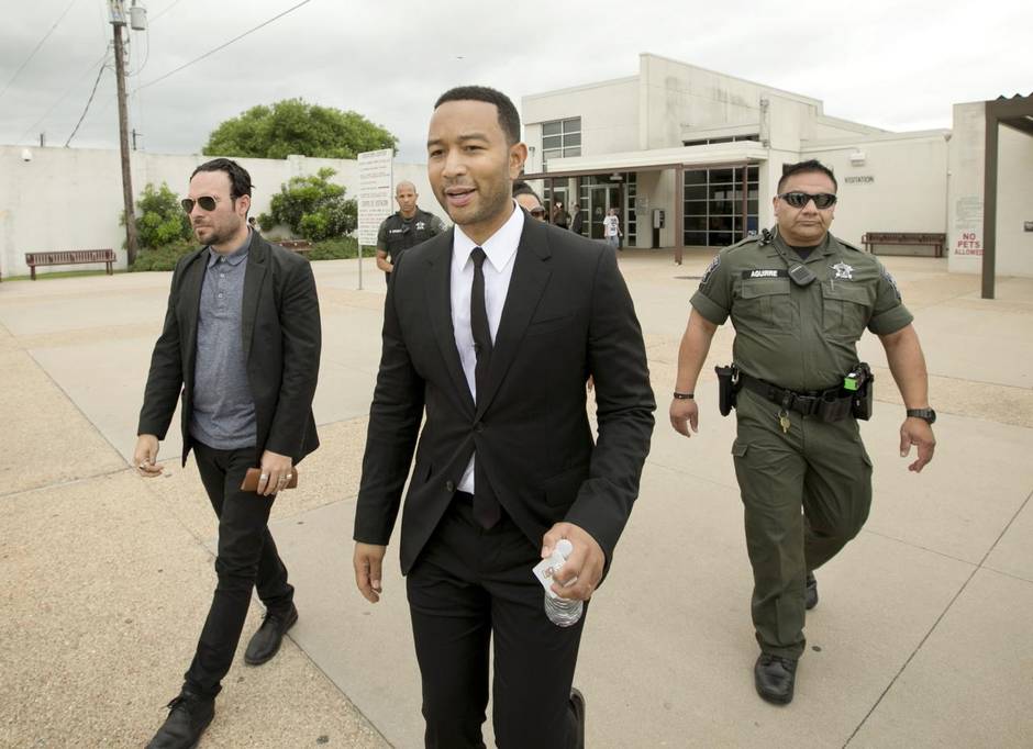 John Legend visited a Texas prison on Thursday, April 16, 2015, to promote his ‘Free America’ campaign. The ‘All of Me’ star, performed a few songs at the Travis County Correctional Complex, following a press conference at the Senate chamber.