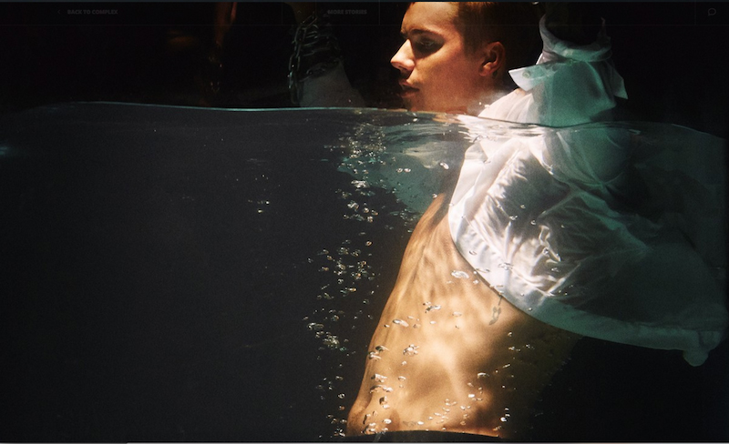 The Complex cover shows him shackled in chains underwater, looking like he’s about to drown in the negative media attack, but really he’s about to make his improbable escape.
