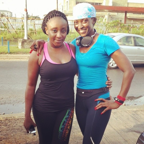 With @iniedo after a 7 km run….Are you still in bed? Did you use the rain as an excuse not to exercise?? No pain No gain!! #Fit4Life #fitfriend #FitSis #fitlifestyle #NollywoodGreats #NoDulling #Legooooo