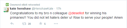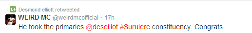 Nollywood actor, director and producer, Desmond Elliot emerged victorious at the APC primaries which held in Lagos yesterday and he has continued to receive goodwill messages from fans, colleagues and fellow celebrities.