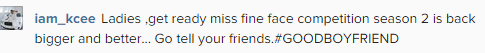 The contest involves ladies putting up pictures on Instagram for fans of the ‘Pull Over’ singer to vote and the the lady with the highest number of likes will be announced as the winner of the contest.