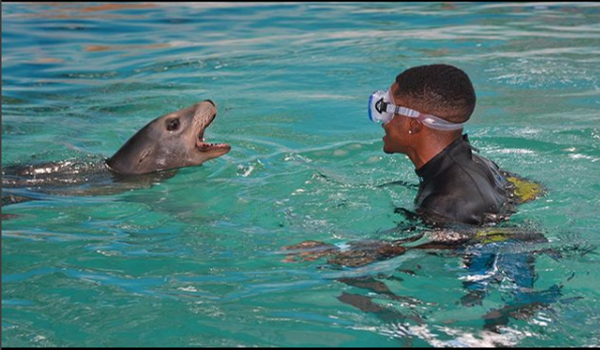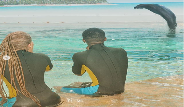 Cole shared photos of the both of them having fun at the Dolphin Cay Atlantis in the Bahamas.