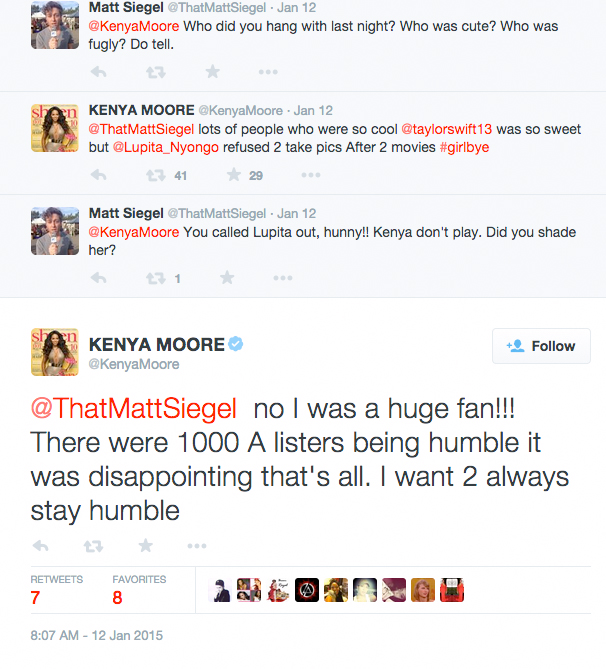 Kenya Moore is known for her dramatic lifestyle. The ‘Real Housewives of Atlanta’ star claimed Lupita Nyong’o refused to snap a picture with her at the 2015 Golden Globes.