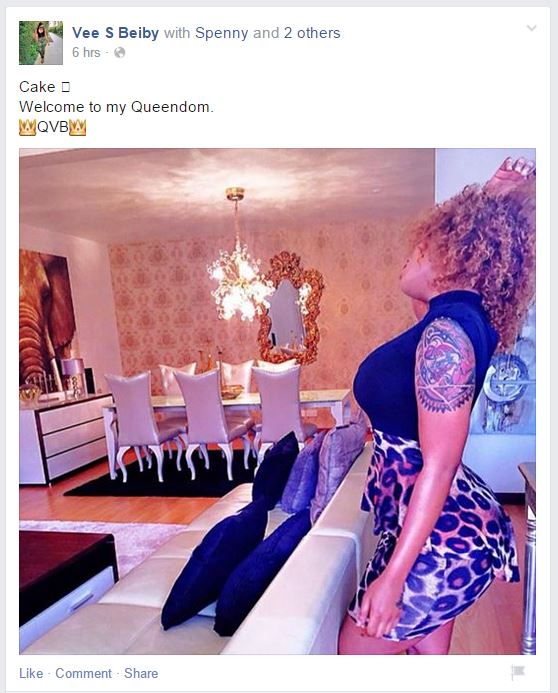 Kenya’s raunchy video vixen, Vera Sidika has flaunted several photos of a well finished and luxurious home recently that many started thinking it might be a new crib she wants to let her fans in on.