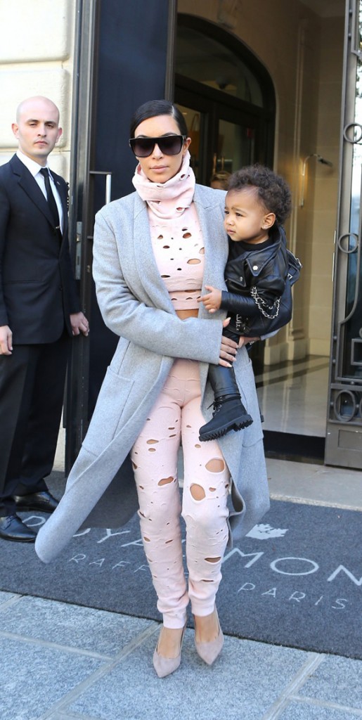 Kim Kardashian insists she didn’t accidentally leave baby 15-month North old behind after checking out of Le Royal Monceau in Paris on Wednesday, October 1, 2014, despite a video and photographs showing the reality TV star had to return to the hotel from her car for the baby before driving to the airport to catch a flight back to Los Angeles.