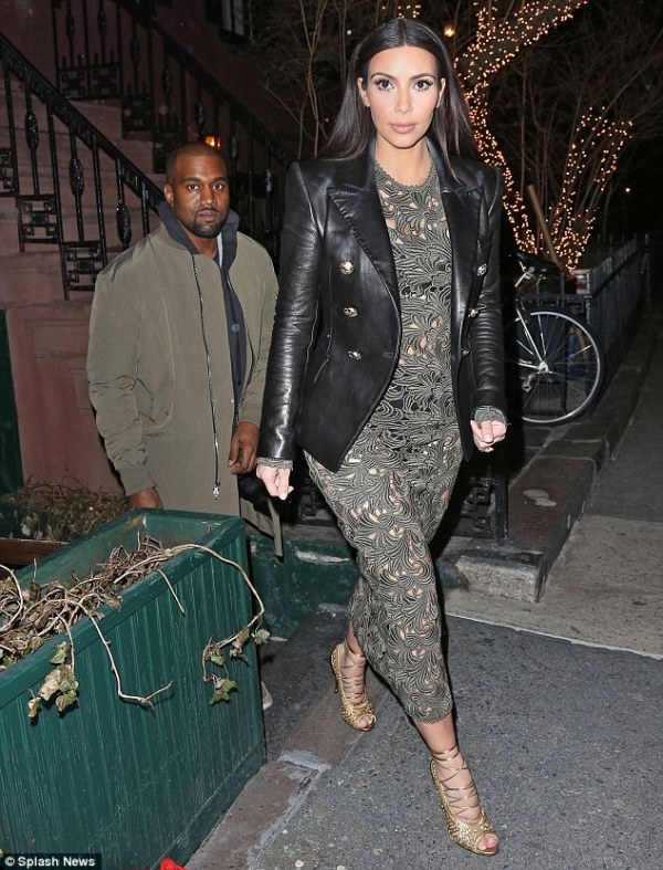 Mrs Kanye West to-be wore a grey lace shift flashed both her brassiere and underpants in New York on Tuesday, March 25, 2013.