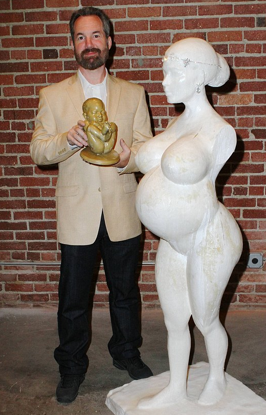 Daniel Edwards is no stranger to bizarre sculptures as he has depicted Britney Spears giving birth and Angelina Jolie breast feeding.