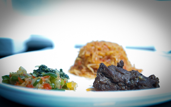 At the end of the cooking time, Victor’s team made Jollof rice topped with plain Egg Omelet, Warm Salad and Ugwu Salsa, Steak Kebab with the peppers as a garnish, While Doom’s team prepared Jollof Rice with Knorr Pan Fried Steak on a Roasted Bell Pepper Sauce, and a side dish of Ugwu Egg Sauce.
