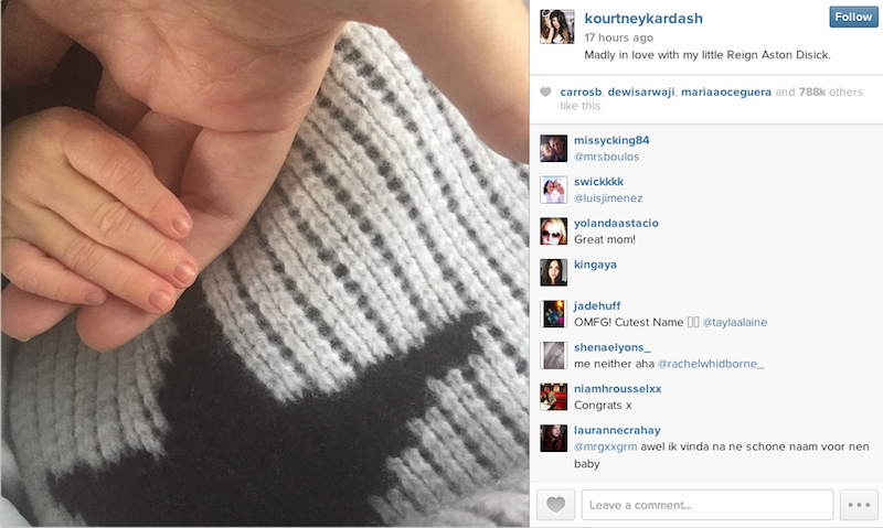 Kourtney Kardashian has named her third child, Reign Aston Disick.