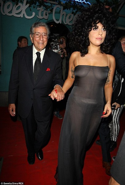 This time, the star has bared her breasts in a sheer gown she wore to the Belgium jazz club, L’Archiduc accompanied by 88-year-old music legend, Tony Bennett on the night of Monday, September, 22, 2014.This time, the star has bared her breasts in a sheer gown she wore to the Belgium jazz club, L’Archiduc accompanied by 88-year-old music legend, Tony Bennett on the night of Monday, September, 22, 2014.