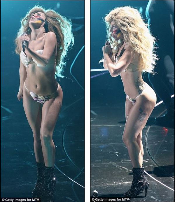 Gaga however stunned as usual, eventually dressing down to her underwear which was of a set of seashells.
