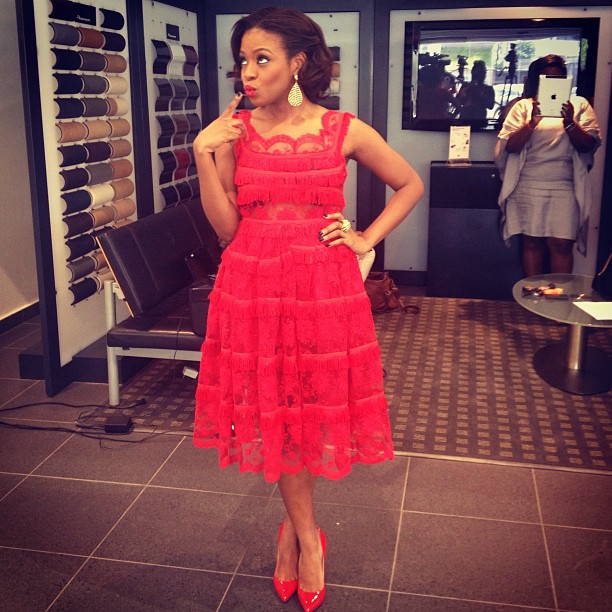 We love the look and that cute pose too! ‘Lady in red. Look for my final #53xtra ep….thank you to my style team for being awesome‘, she wrote.