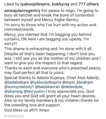 Lanre Gentry, estranged husband of Nollywood actress Mercy Aigbe; has apologized for the marital crisis that has engulfed he and his wife in the past months.