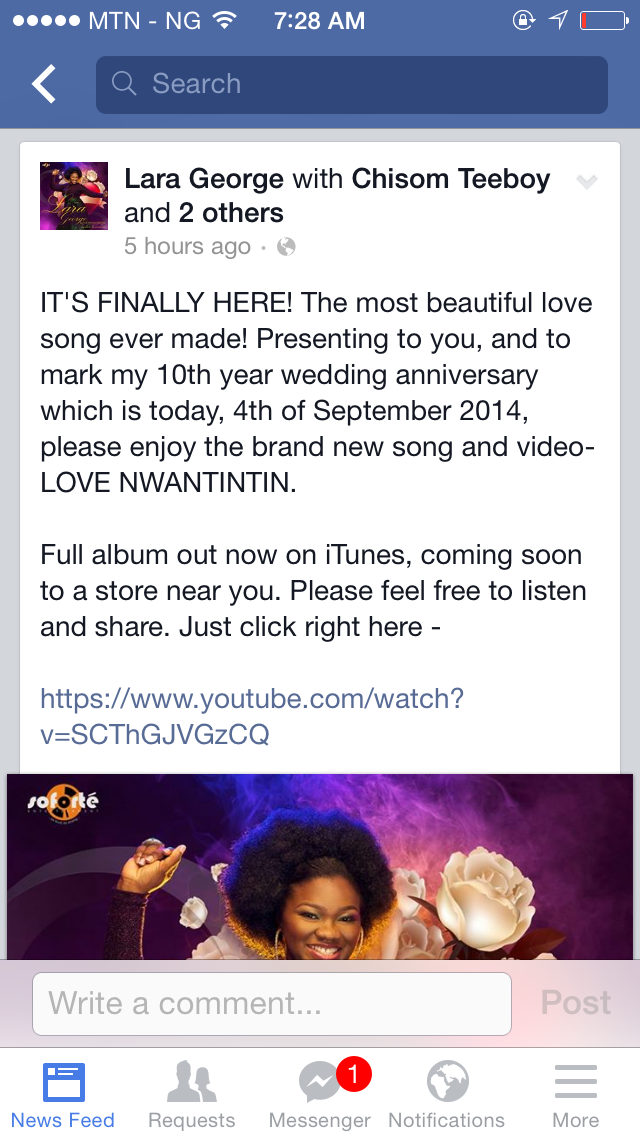 Lara, of whom her husband once said, ’to be honest, it was not anything I did; she was just sorry for me. She saw a good guy who really liked her and she decided to bless me with herself,’ has made a song available to her fans and a video to go along with it.