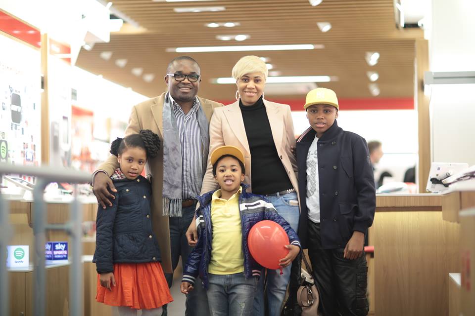 The London-based director of award winning movies, Mirror Boy and Last Flight to Abuja posted the couple’s wedding picture taken back in 2005 and another recent picture of himself with his wife and children on Facebook in celebration.