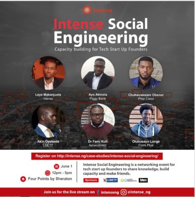 Intense Social Engineering (I.S.E) is an event that solves this problem by bringing together successful tech start up founders to speak to 50 plus carefully selected tech startup founders all over Nigeria while also giving you the opportunity to network and make friends. In addition, I.S.E will make work and life easier for you by offering you practical solutions to grow your tech startup. Register HERE for a chance to be among the 50 chosen tech startup founders.