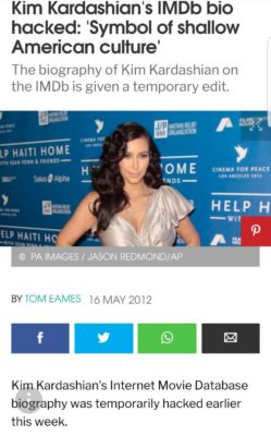 NET findings also discovered that celebrities like Kim Kardashian’s have had their names ‘imported into Imdb’s website in the past.