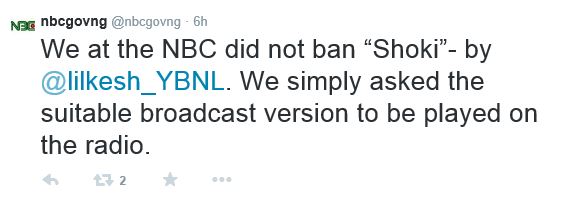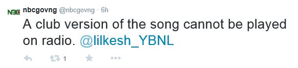 Following reports that Lil Kesh‘s song, Shoki has been banned by the Nigerian Broadcasting Corporation(NBC), the NBC has responded through its official twitter account that the song has not been banned.