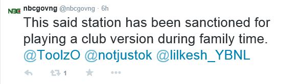 The broadcast regulator however said a radio station was sanctioned for playing a club version of the song during the ‘Family Time’ belt, when children have access to TV and radio.