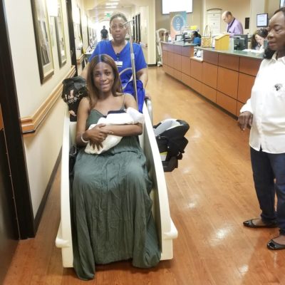 Linda who shared photos as she was being wheeled in the hospital lobby used the opportunity to reveal the name of her son. She called him ‘Jayce Jeremi’ as she excitedly wrote “Going home with my prince…”
