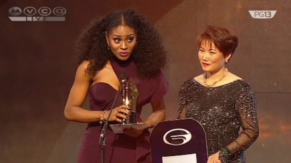 8:46 Award for Best TV Series goes to … Jenifa herself, Funke Akindele for Jenifa’s Diary. The award comes with a N250,000 gift voucher too.