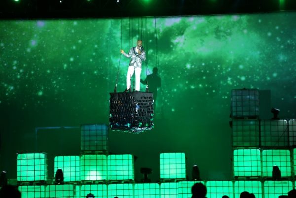 The concert was held in the open at the Ocean Grounds of Eko Hotel and Suites, Victoria Island, Lagos. In what can be described as a brave move from the producers of the show (daring the somewhat unpredictable weather condition in the city). The much spaced stage was creatively setup with colour-changing translucent tanks piled up on each other, leaving pathways for artistes to conveniently make their entry and exit off the vertical stage. There was also a screen setup right behind the tanks with a projector beaming from about 200 meters away.