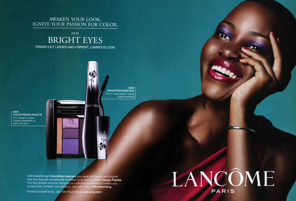 Lupita wrote on Instagram: ‘So for the #goldenglobes, I wore this new @lancomeusa “Jacaranda Bloom” #eyeshadow. The super-talented Nick Barose designed the palette, and I named it Jacaranda Bloom because it immediately reminded me of growing up with the Jacaranda trees that lined the field hockey pitches of my elementary school. In February the purple leaves would rain onto the red soiled field and create a beautiful and delicate purple trimming around it. The earth tones and the purple created an unforgettable image. #goldenglobes.’