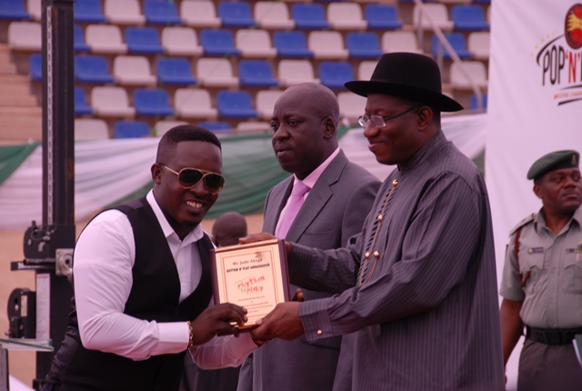 The short black boy received an honorary award from President Goodluck Jonathan.