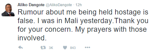 He was rumoured to have been part of the hostages before he tweeted;