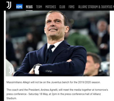 Expectations are that he would possibly be moving to Chelsea at the beginning of the new season. Massimiliano Allegri has not said anything about where he intends to move to and the club is to hold a press conference tomorrow at Allianz Stadium.