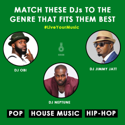 DJ Neptune, DJ Jimmy Jatt and DJ Obi will treat guests with exciting music that cuts across three genres. Guess can you tell what genre each of them would be playing? #LiveYourMusic