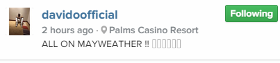 Davido just shared a photo on Instagram showing off bundles of dollar bills with the caption, ‘All on Mayweather’.