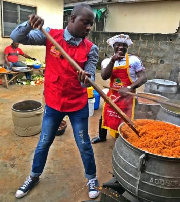 To celebrate the occasion, MC Lively partnered with Kokun Foundation, a humanitarian organisation and together they prepared a feast with which they stormed poor neighbourhoods in Lagos to distribute free food and drinks to kids in the street.