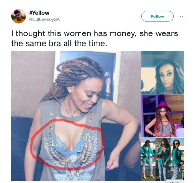 How can a young man spend so much time looking at a woman’s picture, not one but four, and all he comes of with is that she is wearing the same bra always. And that because she’s rich, she should be able to afford to change her bra. And he puts it on social media in an attempt to shame or embarrass her.