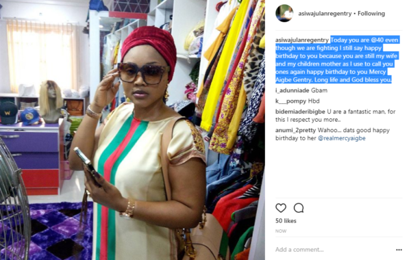 However, Lanre didn’t forget that she’s the mother of his kids and his wife. He also made us know that they are still fighting and her name is still Mercy Aigbe-Gentry even though she has erased the Gentry from her name.