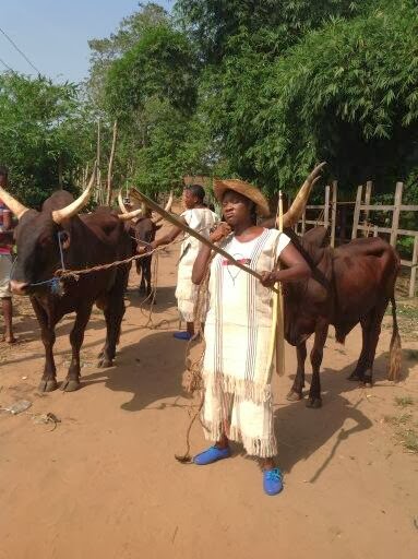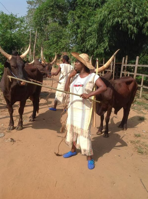 The actress is seen on a movie set in the full regalia of a cattle herdsman.
