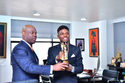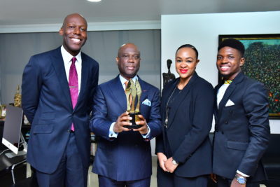 Michael Akinrogunde, who directed Penance, winner of Best Short Film/Online Video at the just concluded Africa Magic Viewers’ Choice Awards (AMVCA), in company of the film’s producers, Accelerate TV, on Tuesday, September 4th, 2018, visited Access Bank Plc Group Managing Director/Chief Executive Officer, Herbert Wigwe at the bank’s head office in Lagos for a presentation of the much celebrated award.