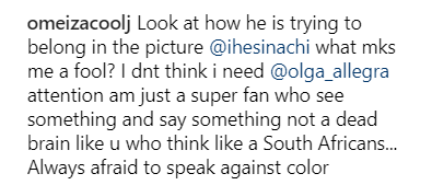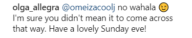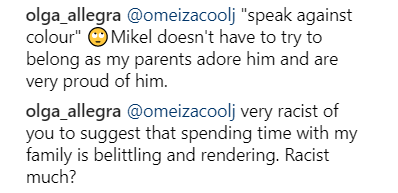 Another IG user asked Olga to ignore them, but this troll wasn’t quite done – implying she was being racist to her man with the photo