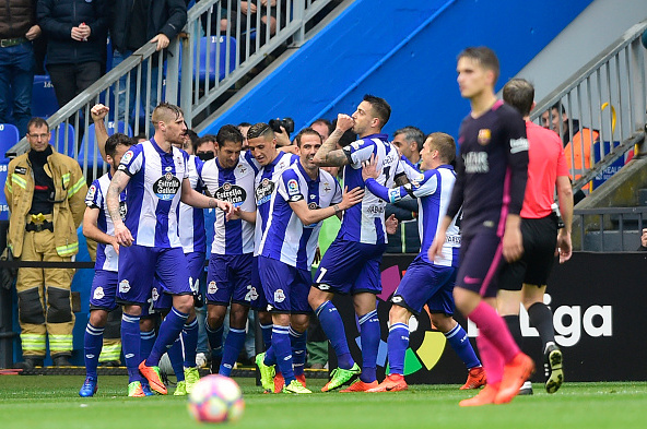 Luis Suarez equalised for Barcelona a minute into the second half but Deportivo had the last laugh with Alejandro Bergantinos scoring the winner in the 74th minute.