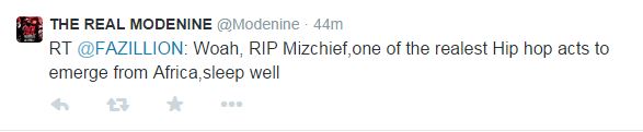 Modo, as Mode 9 is also very well known, took to twitter to pay tribute to the late rapper.