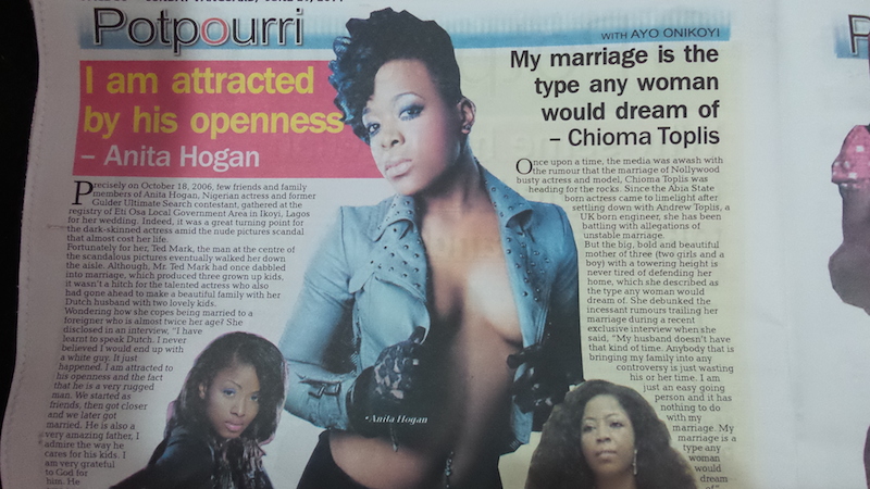 The interview was published in the June 29, 2014 edition of Sunday Vanguard’s Potpourri page. It was conducted by an Ayo Onikoyi.